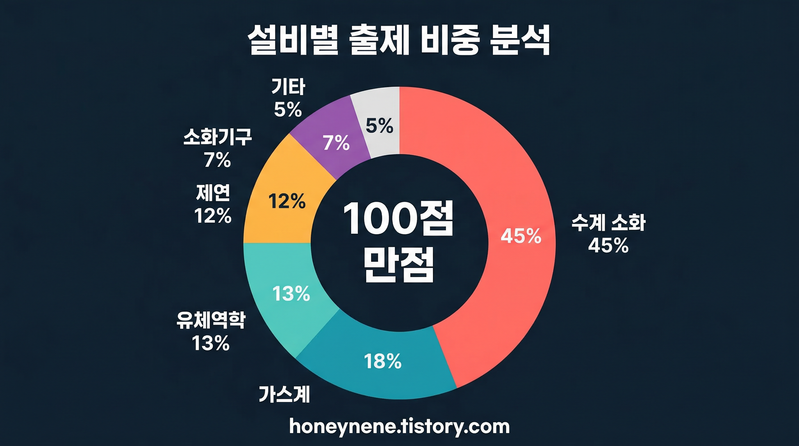 최근 5년간 기출문제를 분석하면, 설비별 출제 비중은 아래와 같은 패턴을 보입니다. 수계 소화설비에서 절반 가까운 점수가 배정되므로, 이 파트를 먼저 완성하는 것이 합격의 지름길입니다.