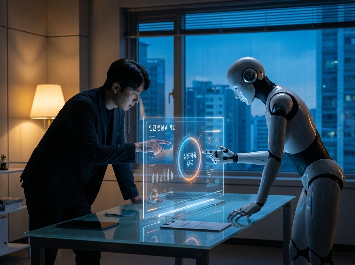 AI가 자동화된 업무를 수행하는 과정에서, 인간이 최소 한 번 이상 개입하여 검증·수정·판단하는 원칙입니다. 완전 자동화가 아닌, 인간의 전문성과 윤리적 판단이 최종 결과물의 품질을 결정한다는 의미입니다.